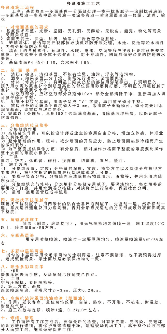 4、施工性:多彩漆也可一次喷涂施工,就算是由于施工不当而导致花纹分布不均